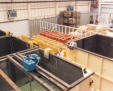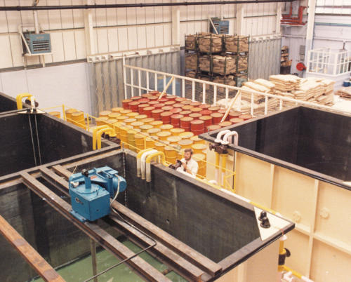 The completed stack of nickel cadmium battery plates is fitted into containers made either of steel ot plastic.